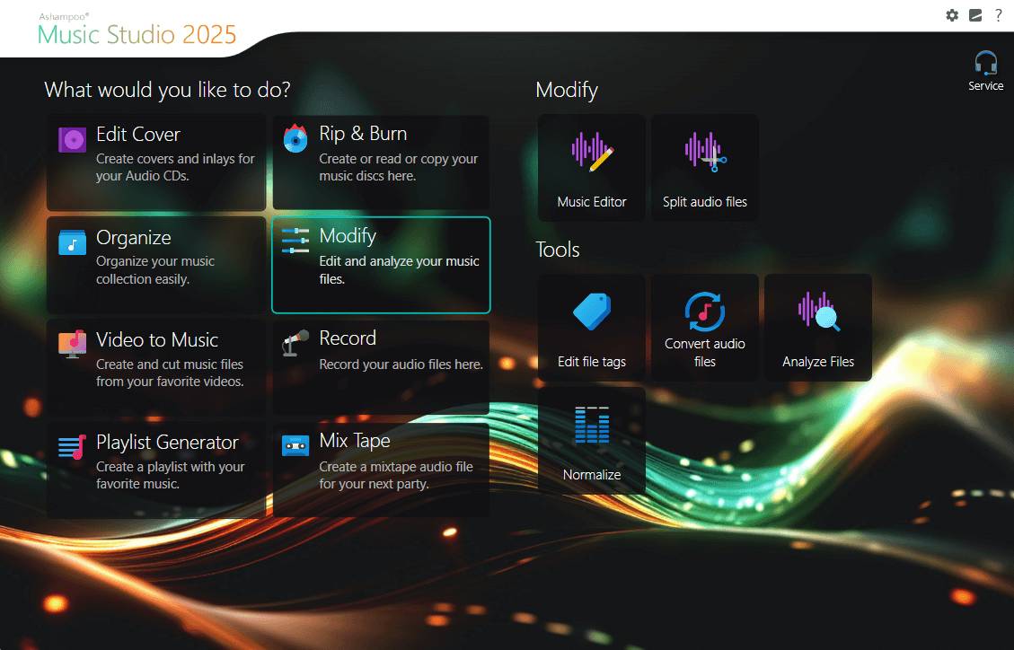 Ashampoo Music Studio 2025 es la solución definitiva para quienes desean tener control total sobre su colección de música. Esta última edición le permite obtener herramientas profesionales para editar, ripear y grabar archivos de audio. Ya sea que necesite grabar sus propias voces, extraer audio de videos u organizar una biblioteca enorme, este software le permite un flujo de trabajo fluido. Diseñado para que su audio suene con calidad de estudio, cuenta con una interfaz intuitiva que le ayuda a obtener resultados perfectos en tan solo unos clics.